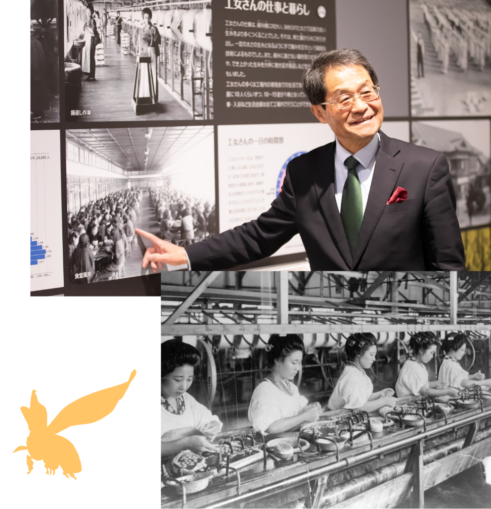 「製糸場で働く工女さんというと、あまり幸せではない暮らしを想像される方も多いと思うのですが、まだ貧しかった当時の日本で白いご飯が 3 食好きなだけ食べられるということを想像してみてください。女性が外で働ける場所も機会もまだほとんどない時代です。誇りを持って働いていた方も多かったと思います。実際に、工女さんたちがいたからこそ、岡谷は日本有数の生糸の産地になれたのですし、それが日本の経済と産業を支えていたのは事実です。工女さんのような現場で働く人の姿や思いを後世に残していくのも、この博物館の大切な役割なんです。」