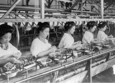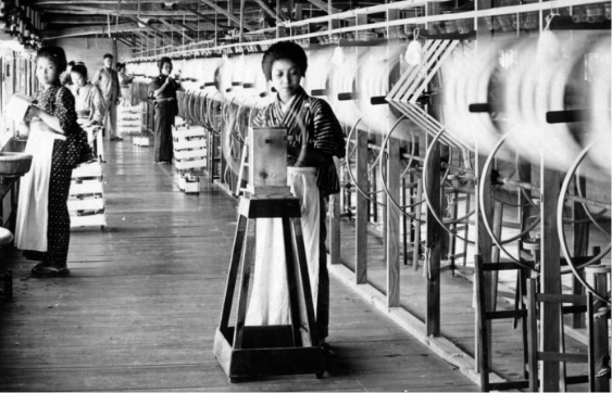 蚕の繭から引いた糸を生糸と呼びますが、明治時代から昭和初期に至るまで、日本の輸出総額の第一位は生糸でした。生糸は当時の日本の経済と産業を支えていたのです。製糸業で栄えたまちとしては、富岡製糸場が世界遺産に登録された群馬県富岡市を思い浮かべる方も多いかと思いますが、長野県もまた製糸業で栄えた地でした。大正 13 年には長野県の生糸生産量は全国トップ。なかでも岡谷の輸出生糸生産量はその60%以上を占めるほどでした。
