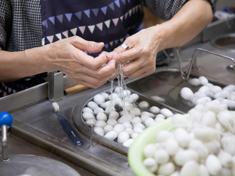 「さらには、オール岡谷産のシルク製品を増やそうということで、『岡谷シルクブランド』認証制度も始まりました。岡谷産の繭、岡谷市内で製糸した糸を使用しているもの、桑や養蚕、製糸工程で抽出される成分が用いられた化粧品や食品、体験や学習などのサービスの4つに分類して認定しています。」