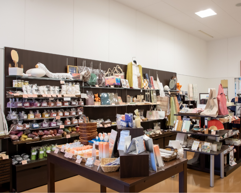 岡谷蚕糸博物館 〜シルクファクトおかや〜 のミュージアムショップには、シルクを使った衣料品はもちろん、インテリア製品やアクセサリー、桑の実を使ったジャムや桑の葉クッキーなどの食品やシルクパウダーを使った化粧品など、幅広い製品がずらりと並んでいて、お土産にもおすすめです。